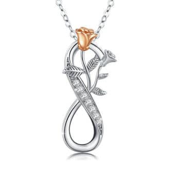 925 Sterling Silver Infinity Rose Flower Pendant Necklace 18″ Adjustable – Gift